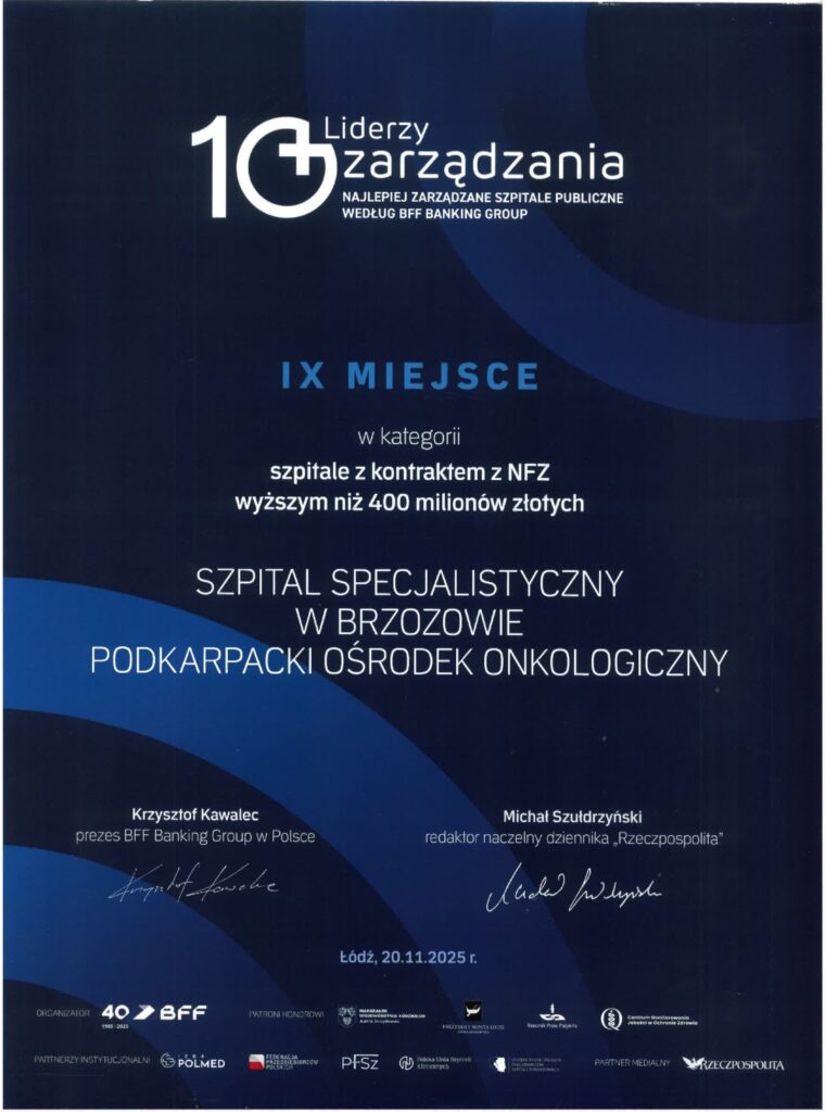 Szpital Specjalistyczny w Brzozowie Podkarpacki Ośrodek Onkologiczny im. ks. B. Markiewicza po raz kolejny został wyróżniony w ogólnopolskim rankingu „Liderzy Zarządzania – najlepiej zarządzane szpitale publiczne”, organizowanym przez BFF Banking Group.